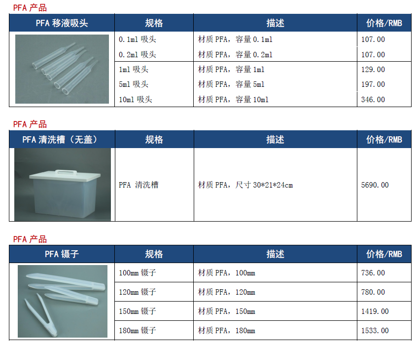 PFA,是一种高性能含氟聚合物,具有优异的化学稳定性、不粘性和低摩擦系数。PFA 类实验室产品广泛应用于痕量分析、超纯化学实验、同位素检测等高性能场景。